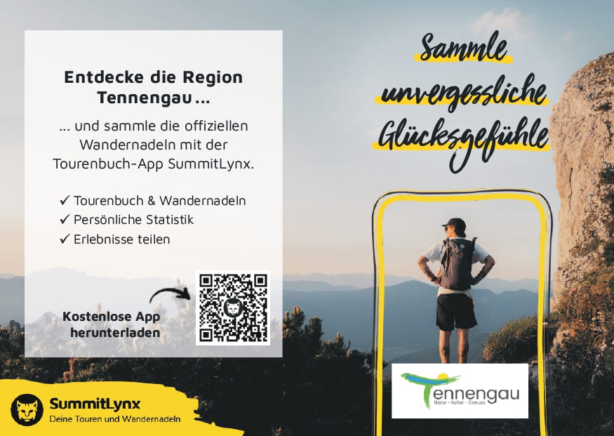 Mit der kostenlosen SummitLynx-App lassen sich Wanderungen bequem per Smartphone aufzeichnen. Über GPS erfolgt der Check-in an Wanderzielen und Stempelstellen rund um Russbach, den Dachstein und den Tennengau. Die gesammelten Touren werden automatisch im persönlichen Online-Tourenbuch gespeichert.